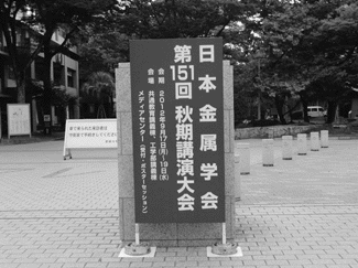 2012年秋期講演大会は、9月17日から19日の期間、愛媛大学城北キャンパスを会場として日本鉄鋼協会と合同で開催した。講演発表件数は1,055題、大会参加者は1,519名であった。