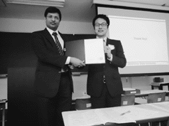 若手研究者の活動の活性化とTMSとの国際交流促進を目的に2006年より設けられた Joint JIM/TMS Young Leader International Scholar Program として、TMSから派遣された代表者 Sandip P. Harimkar氏が一般講演「アモルファス・準結晶」、Nitin Chopra氏が一般講演「ナノ・萌芽材料」の中で Young Leader International Scholar講演発表後、座長より賞状が授与された。